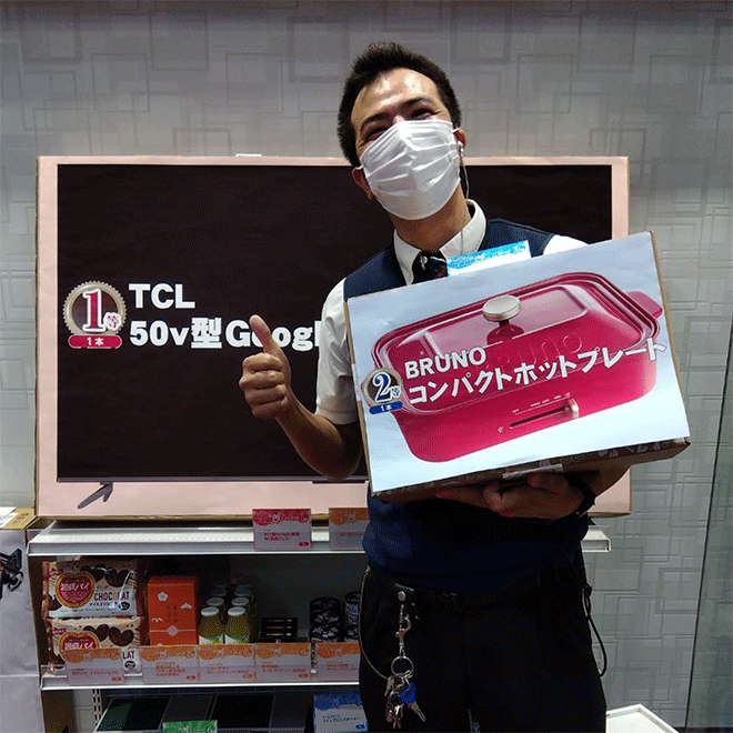 ファン感の1等景品はダンボールに入っていて中身が遠めだとわかりずらくなっている事で、お客様により期待感を持ってもらうようにと、景品の大きさに合わせてポスターをダンボールに貼ってくれました。ファン感期間までの日にちはまだありますが景品を実際に見る事により、ファン感の来店動機にもつながると思います。手間を惜しまず、お客様目線の行動に「こんなもんじゃない!」です。