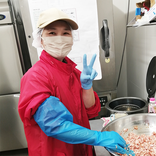 ぎょうざ製造で、少ない人数で効率的に生産を目標とする中、相方である私の作業スピードや進捗を把握・考慮しながら先回りをして作業を進めてくれ、結果的に当日の生産数を時間内に終わらせる事が出来ました。今回に限らず、習熟度など個々で違いますが、個々の状況を把握・認めながら先回りし行動する姿勢と、時間内で少人数で効率的に回すという目標を達成していく姿勢に「ALL RAINBOW」です。