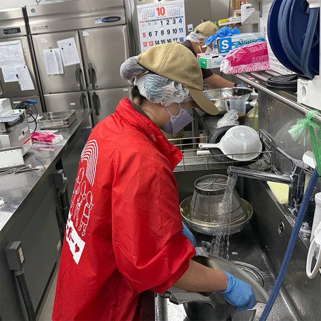 14時あがりだった小沼さん。あがる10分前にはぎょうざ側の全ての作業を終わらせてくれ、手が空いていました。すると「何かやることはありませんか」と私に聞きに来てくれました。あと10分、ゆっくり片付けをしていたら過ぎてしまう時間ですが、後の事を考えて時間いっぱい作業をしてくれようとする気持ちが嬉しかったです。「こんなもんじゃない!」です。