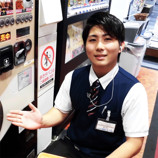 カップの自販機でドリンクを購入しているお客様をがいました。監物さんは、そのお客様に気付くと、冷凍庫の上のおぼんを持ちお客様の元に向かいました。お客様の行動をよく見て、お客様の為になる行動をしていた監物さんに「元気配り」です。