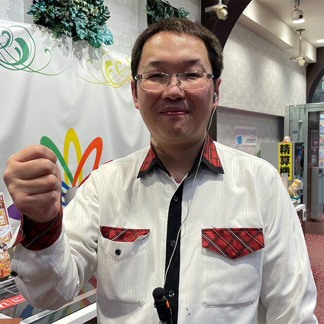 昨日鍵を無くされたお客様が本日来店され、一緒に探してくれたお礼と「メガネのお兄さんは今日いますか?」との事でした。昨日の閉店後、家の鍵を無くして困っていた所、白橋さんが率先して親身になって車の座席下や駐車場・ホールをくまなく探してくれました。その時私もいて一緒に探しましたが、見つかりませんでした。結果的に車のダッシュボード上にあったようでお互いホッとしてその時はすぐに帰られました。鍵を無くすと焦りますし、親身になって探してくれたことに対し直接お礼を伝えに来店して下さったとの事でした。あいにく本日は白橋さんが公休の為お伝えは出来なかったのですが、白橋さんとお客様の間に「心とこころがつながる瞬間」を感じました。