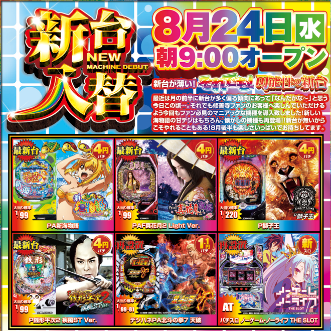 > 新台入替|レインボー修善寺本店