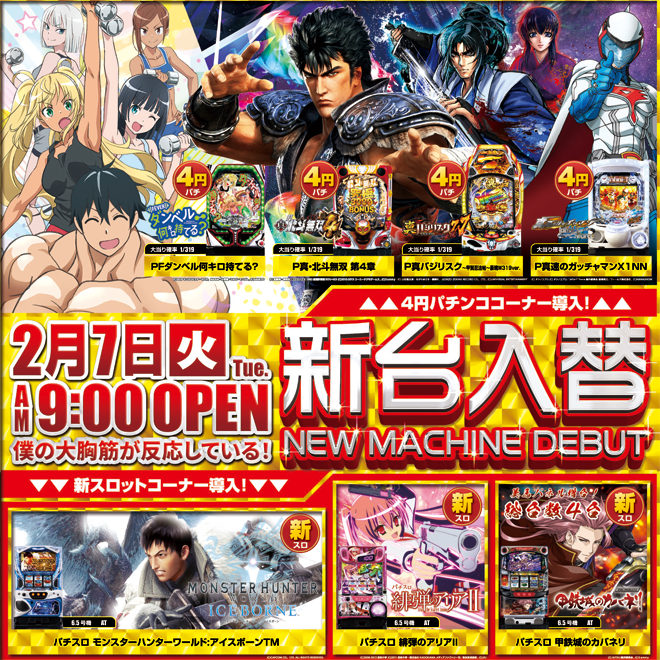 > 新台入替|レインボー修善寺本店