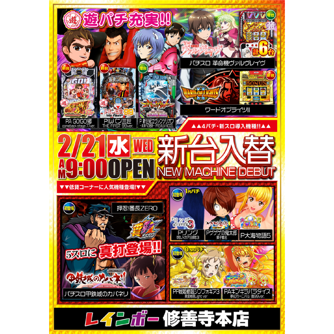 新台入替|レインボー修善寺本店(2024.02.20)