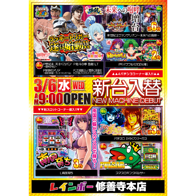 新台入替|レインボー修善寺本店(2024.03.05)