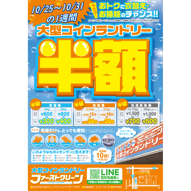 ランドリー半額セール(2020.10.25)